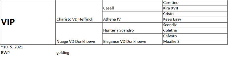 Discover VIP, a truly exceptional 2021 gelding with an incredible future ahead. With a top pedigree featuring Charisto VD Helle and Hunter´s Scendro, VIP is ready to impress with his talent and charm.